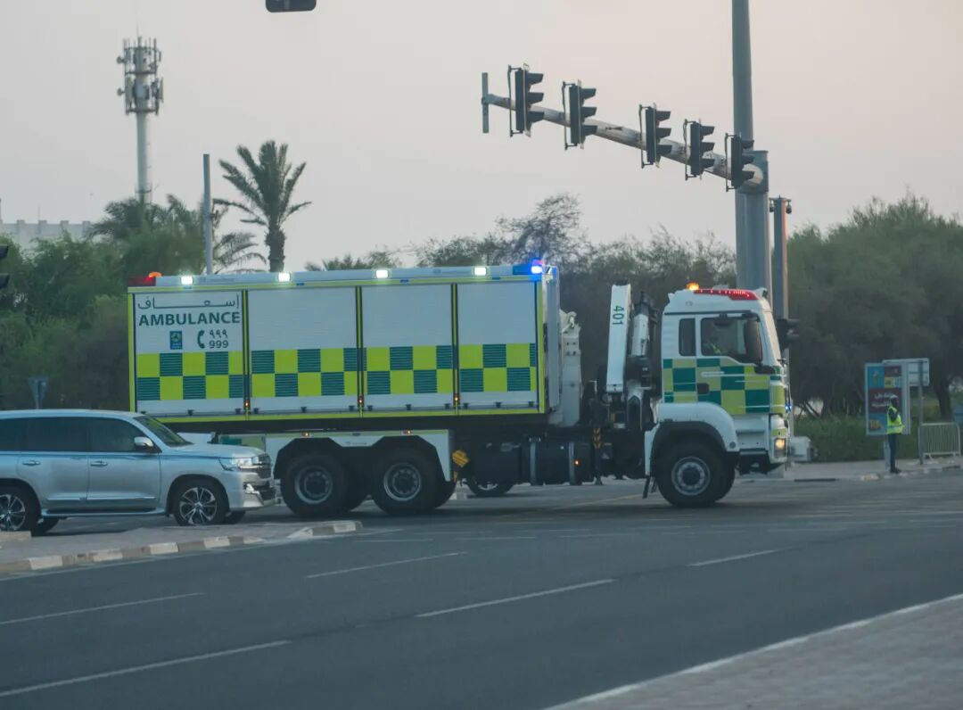 2025年9月9日,在卡塔尔首都多哈,一辆急救车到达事发现场附近。新华社发(尼库摄)